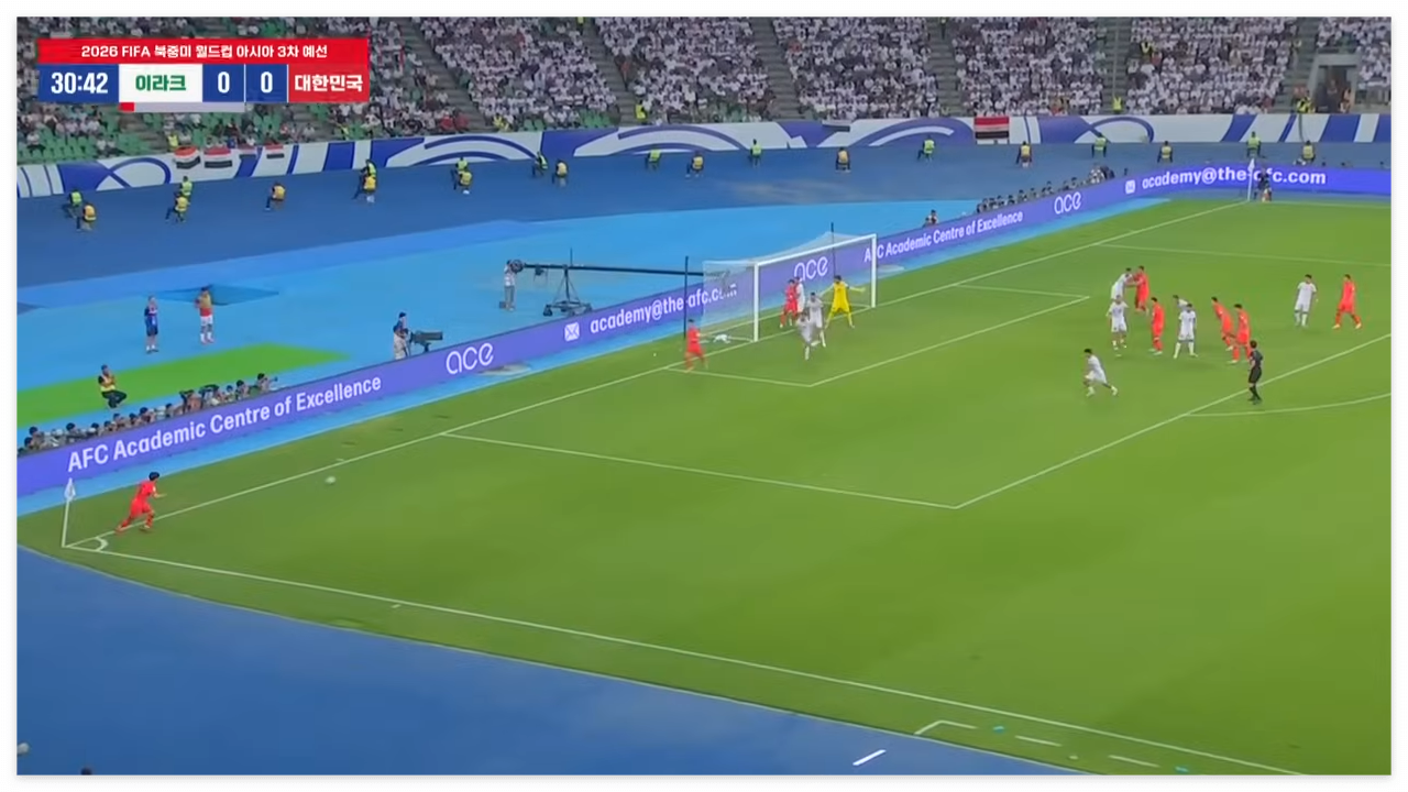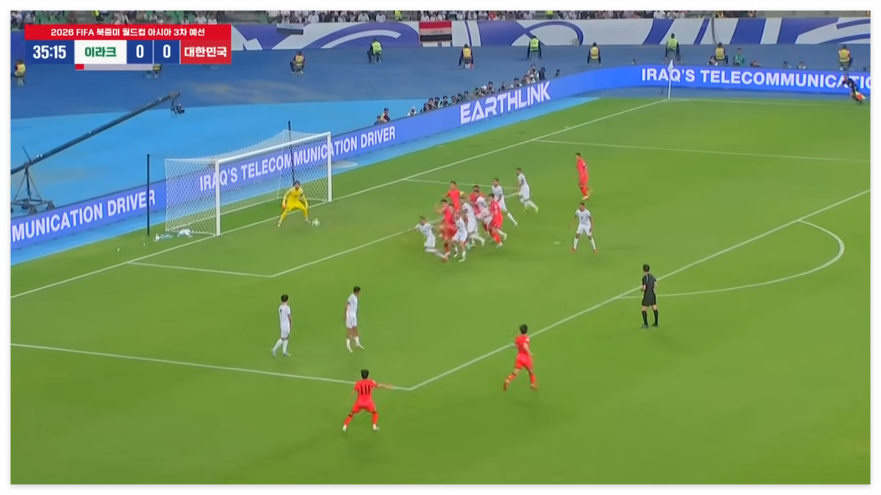 한국 대 이라크 전반전 0:0