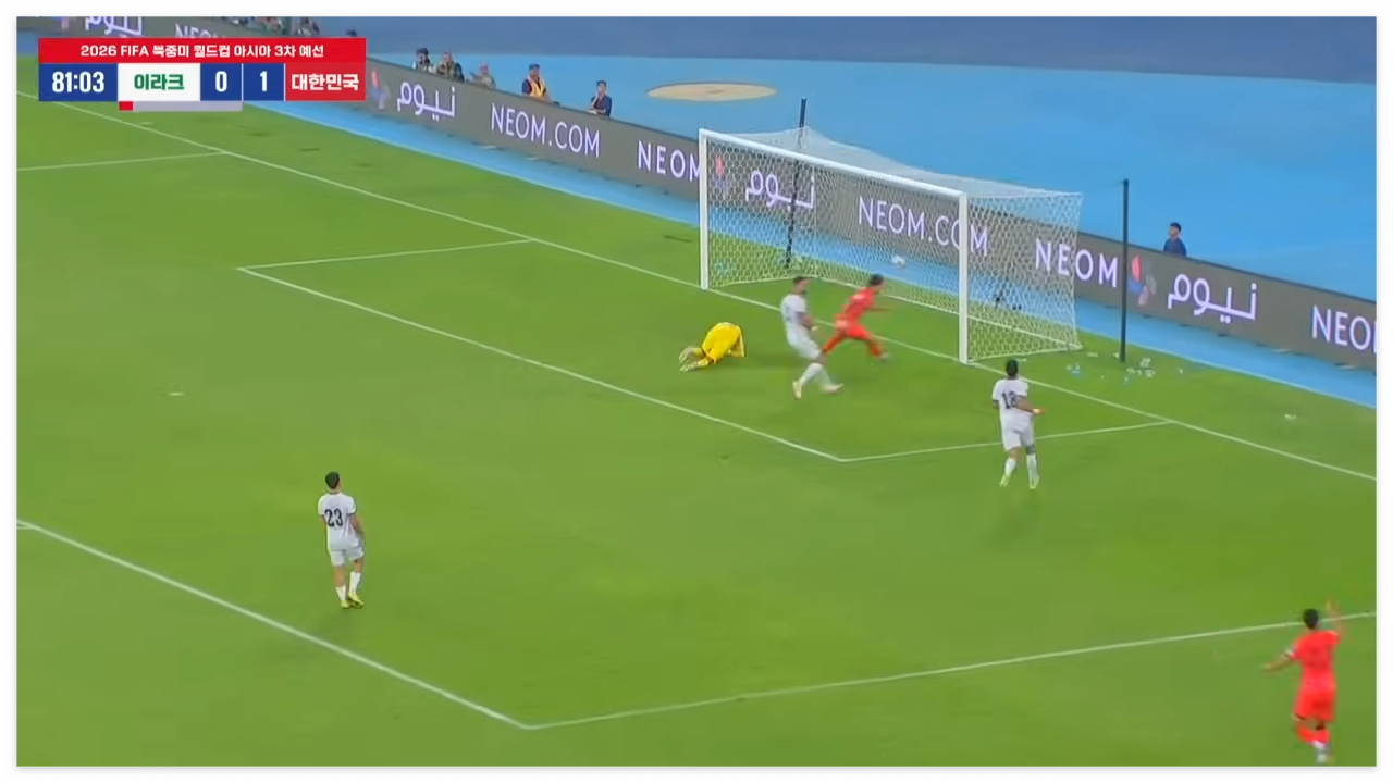 대한민국 축구 국가대표팀이 이라크와 2026 FIFA 북중미 월드컵 아시아 지역 최종예선전에서 2대 0 으로 승리를 거두었습니다.