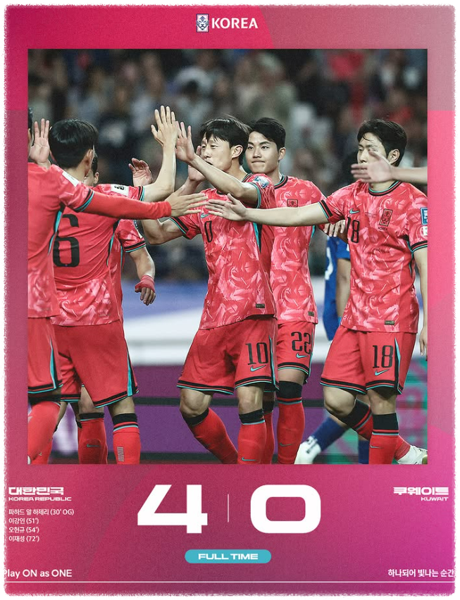 2025년 6월 10일, 서울월드컵경기장에서 펼쳐진 2026 북중미 월드컵 아시아 3차 예선 최종전에서 대한민국 축구 대표팀이 쿠웨이트를 상대로 4-0 대승을 거두며 유종의 미를 거뒀습니다.