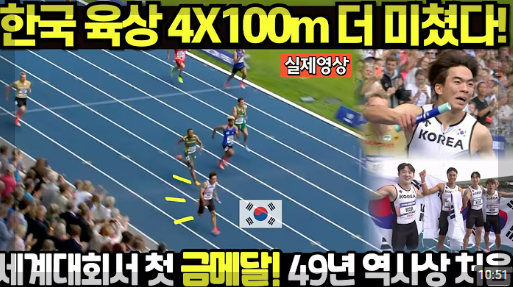 무엇보다 이 경기는 한국 육상 역사상 세계 종합대회에서 계주 종목으로 금메달을 차지한 최초의 사례로 기록됩니다.