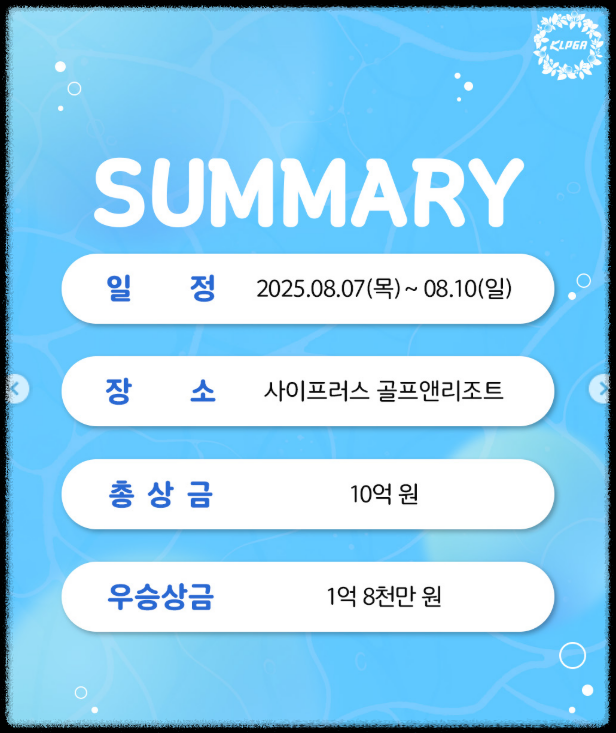 | 특징 | 2025시즌 KLPGA의 18번째 대회, 하반기 첫 시작! |