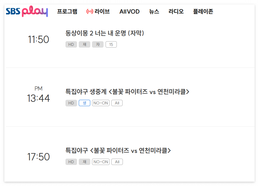 - 불꽃야구 생중계는 어디서 볼 수 있나요?