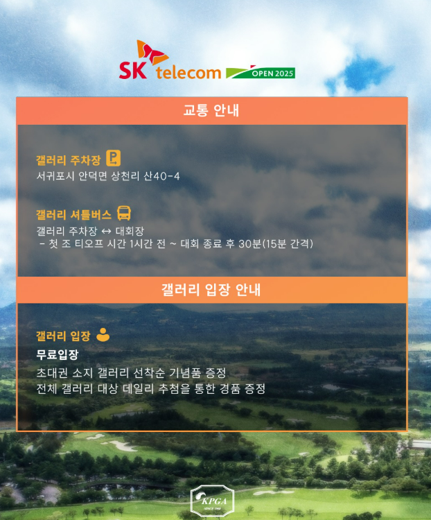 - 셔틀버스: 첫 티오프 1시간 전 ~ 대회 종료 30분 후 (15분 간격)