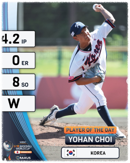 | 최요한 | 용인시청 | 푸에르토리코전 8K 퍼펙트 피칭 | |