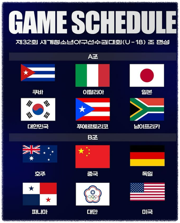 B조: 🇺🇸 미국, 🇹🇼 대만, 🇦🇺 호주, 🇨🇳 중국, 🇵🇦 파나마, 🇩🇪 독일