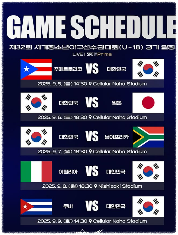 📺 중계 채널: SPOTV Prime, SPOTV NOW, WBSC 유튜브 LIVE