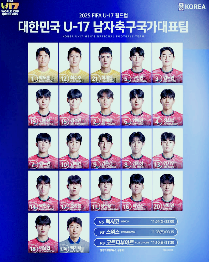 U17월드컵중계, 한국스위스경기, 청소년축구대표팀, FIFA플러스시청방법, 박도훈골키퍼, 남이안선수, 구현빈주장, 대한민국U17, 카타르월드컵, 16강진출전망 U17월드컵중계, 한국스위스경기, 청소년축구대표팀, FIFA플러스시청방법, 박도훈골키퍼, 남이안선수, 구현빈주장, 대한민국U17, 카타르월드컵, 16강진출전망