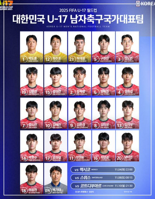2025년 카타르에서 열리고 있는 이번 U17 월드컵.