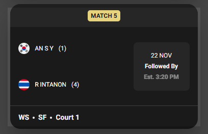 • 경기 형식: 여자 단식 준결승전 (3세트 제도)