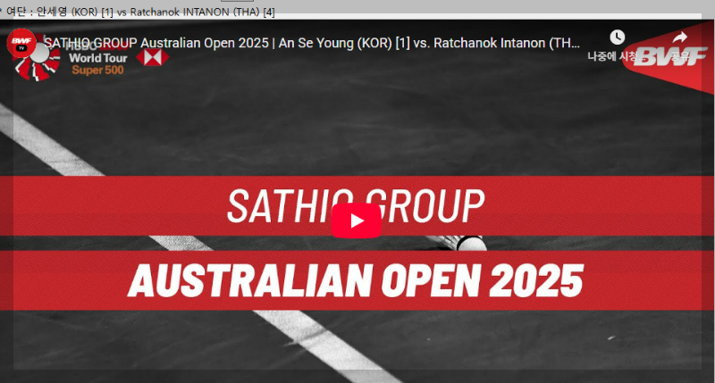 • 시청 방법: BWF TV 유튜브 채널 무료 생중계